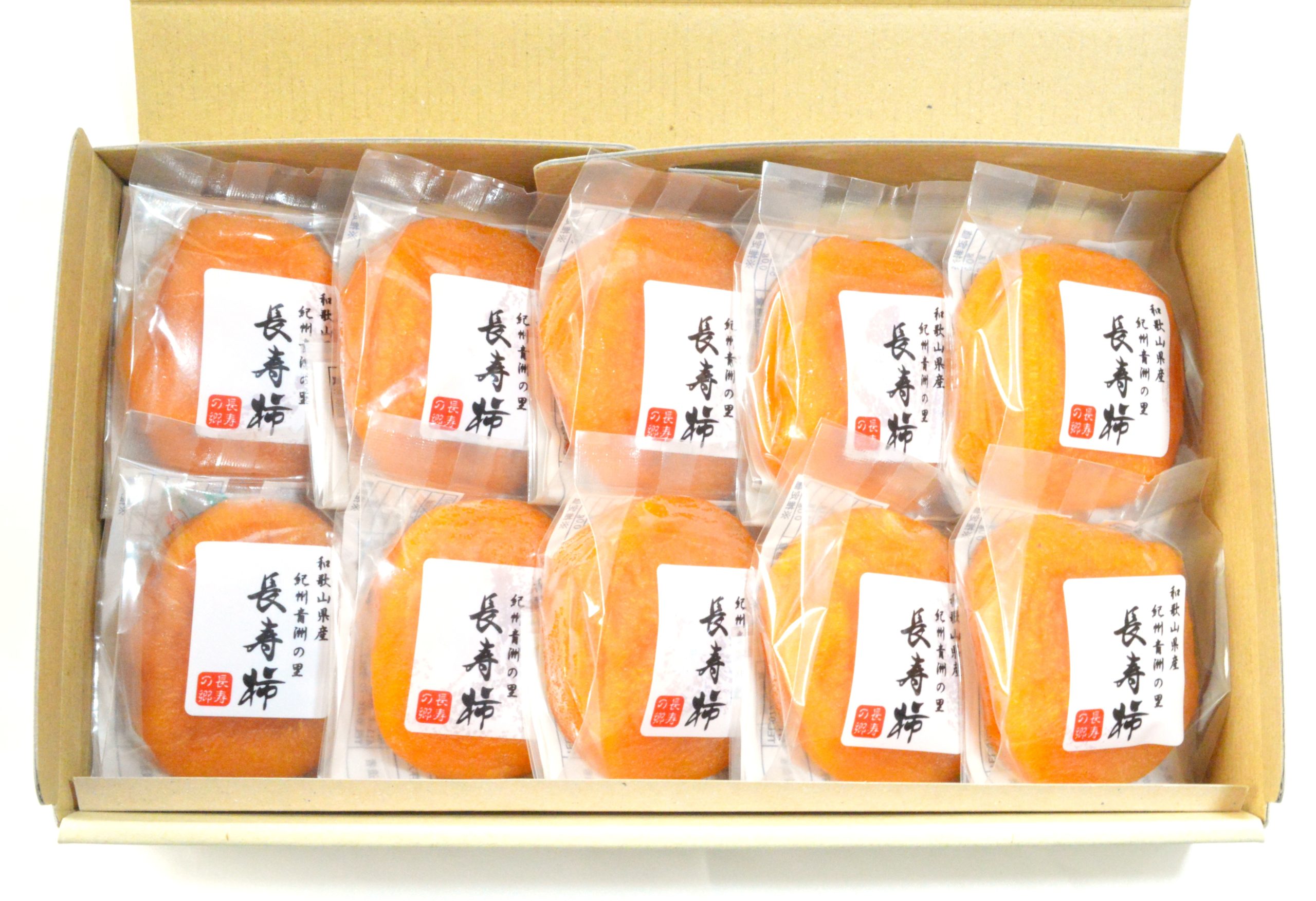 長寿の里と呼ばれる地域で、あんぽ柿の製造が始まった事から、長寿柿としました。